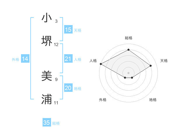 小堺 美浦さんの人格は21画の5点!