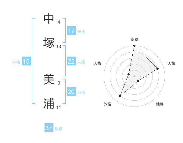 中塚 美浦さんを姓名の画数から五運を鑑定