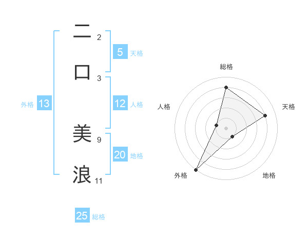 二口 美浪さんの外格は13画の5点!