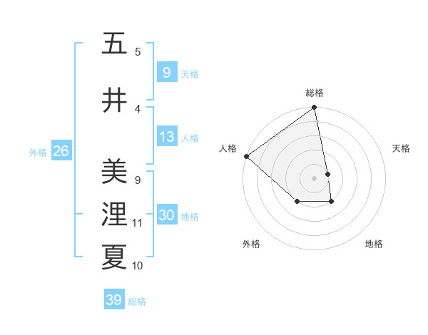 五井 美浬夏さんを姓名の画数から五運を鑑定