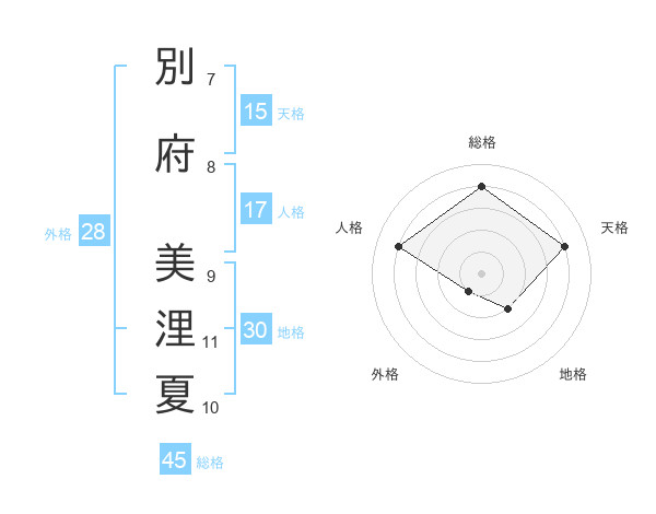 別府 美浬夏さんを姓名の画数から五運を鑑定