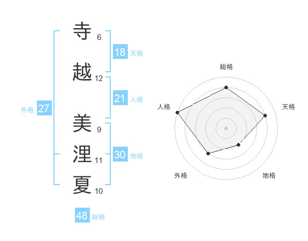 寺越 美浬夏さんを姓名の画数から五運を鑑定