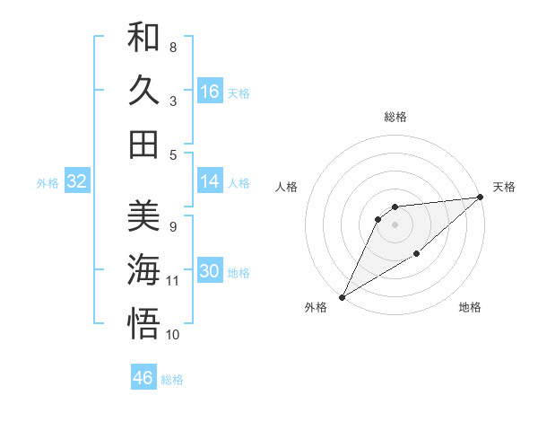 和久田 美海悟さんの天格は16画の5点