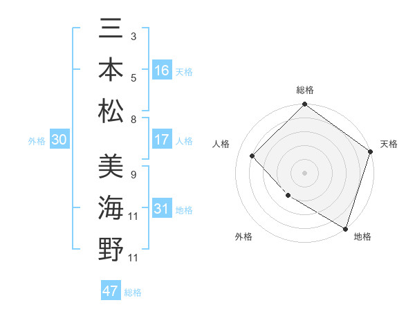 三本松 美海野さんを姓名の画数から五運を鑑定
