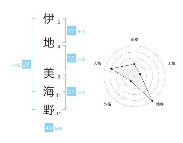 伊地 美海野さんを姓名の画数から五運を鑑定