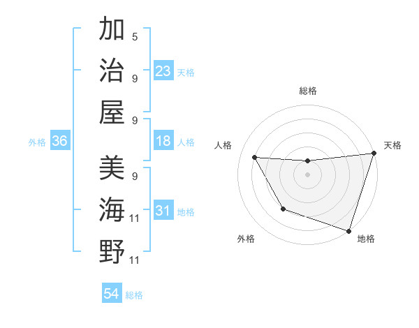 加治屋 美海野さんを姓名の画数から五運を鑑定