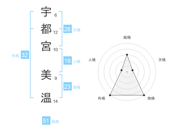 宇都宮 美温さんを姓名の画数から五運を鑑定