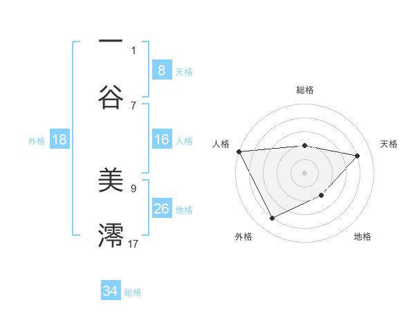 一谷 美澪さんの総格は34画の2点!