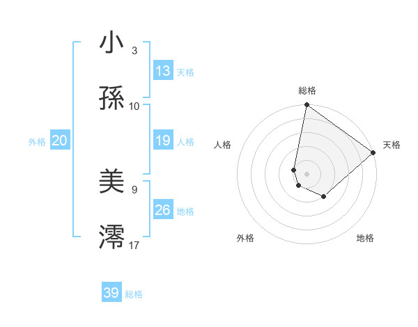 小孫 美澪さんの総格は39画の5点!