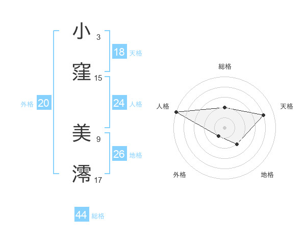 小窪 美澪さんを姓名の画数から五運を鑑定