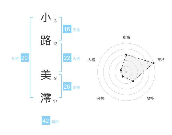 小路 美澪さんの天格は16画の5点!