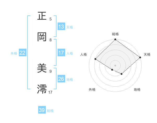 正岡 美澪さんの天格は13画の5点!