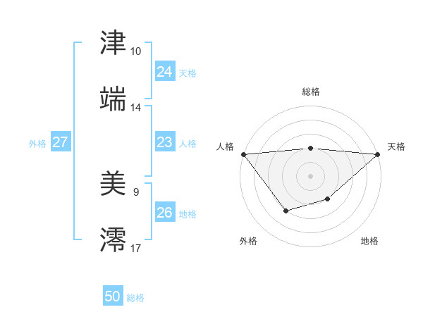 津端 美澪さんの総格は50画の2点!