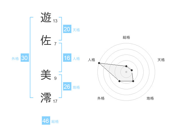 遊佐 美澪さんの天格は20画の1点!