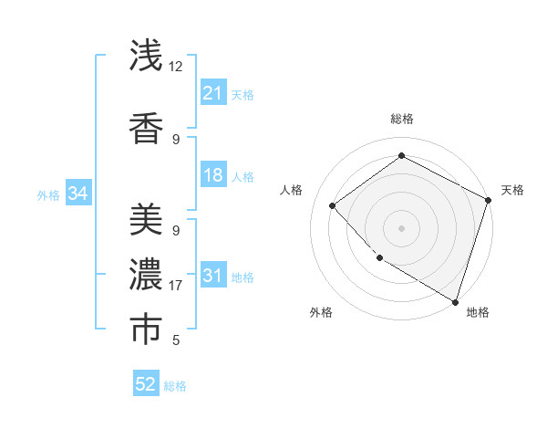 浅香 美濃市さんの総格は52画の4点!
