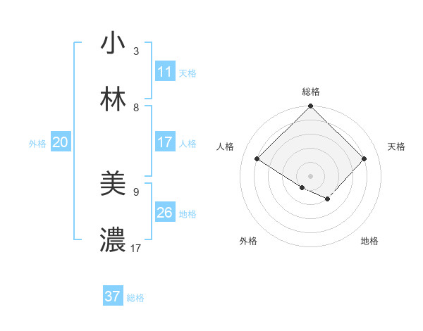 小林 美濃さんの総格は37画の5点!