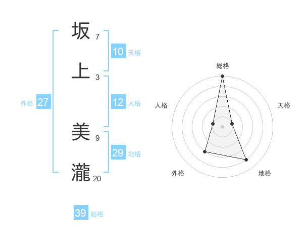 坂上 美瀧さんを姓名の画数から五運を鑑定