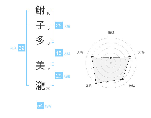 鮒子多 美瀧さんの外格は39画の5点!