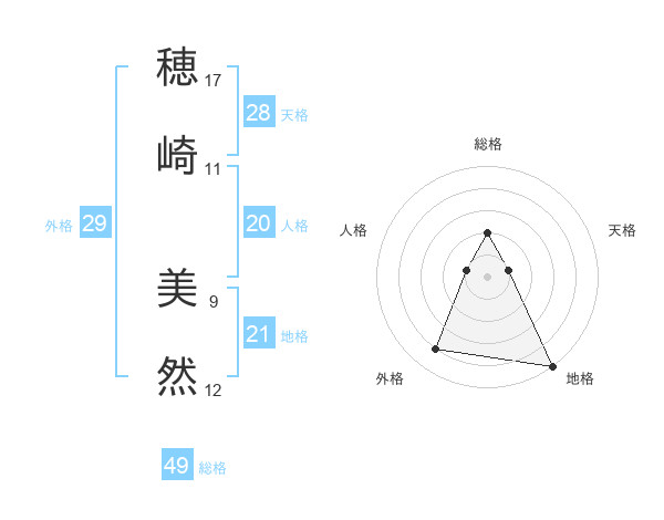 穂崎 美然さんの総格は49画の2点