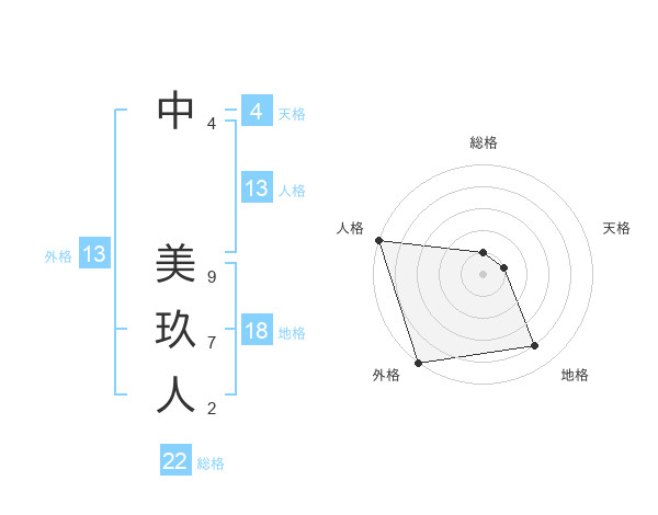 中 美玖人さんの外格は13画の5点!