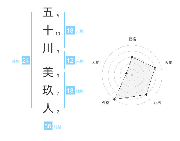 五十川 美玖人さんを姓名の画数から五運を鑑定