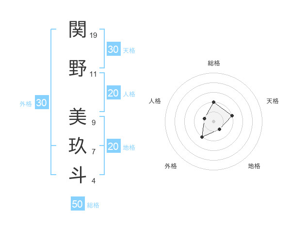 関野 美玖斗さんの総格は50画の2点!
