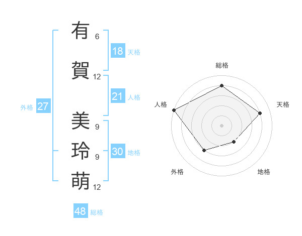 有賀 美玲萌さんの総格は48画の4点!