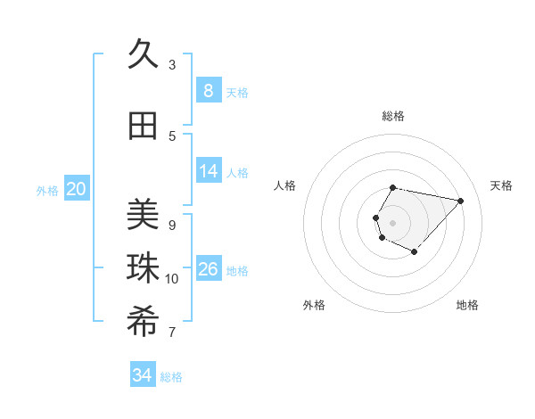 久田 美珠希さんを姓名の画数から五運を鑑定