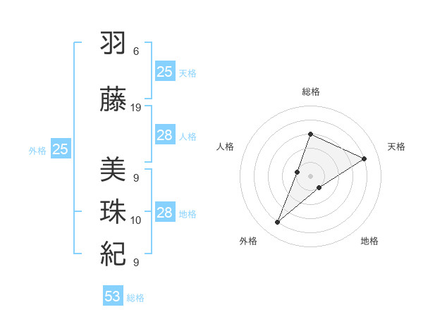 羽藤 美珠紀さんの総格は53画の3点!