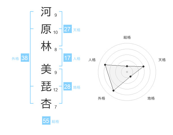 河原林 美琵杏さんの天格は27画の3点!