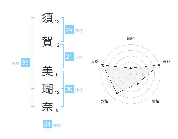 須賀 美瑚奈さんを姓名の画数から五運を鑑定