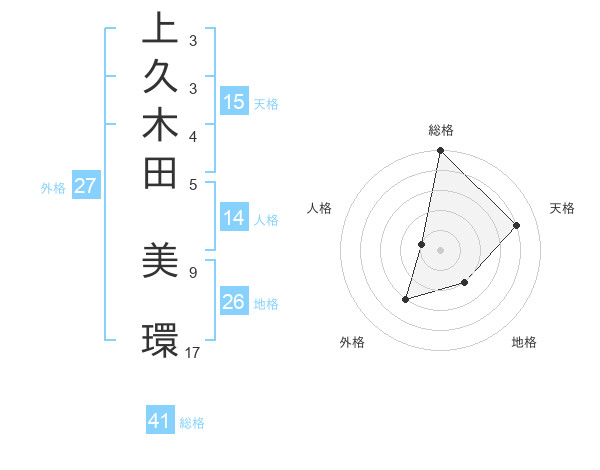 上久木田 美環さんを姓名の画数から五運を鑑定
