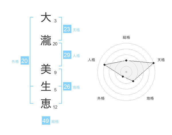 大瀧 美生恵さんを姓名の画数から五運を鑑定