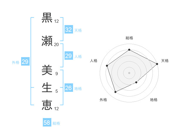 黒瀬 美生恵さんを姓名の画数から五運を鑑定