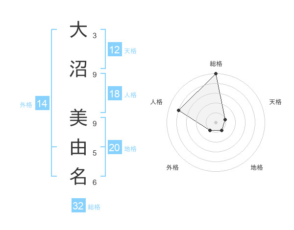 大沼 美由名さんを姓名の画数から五運を鑑定