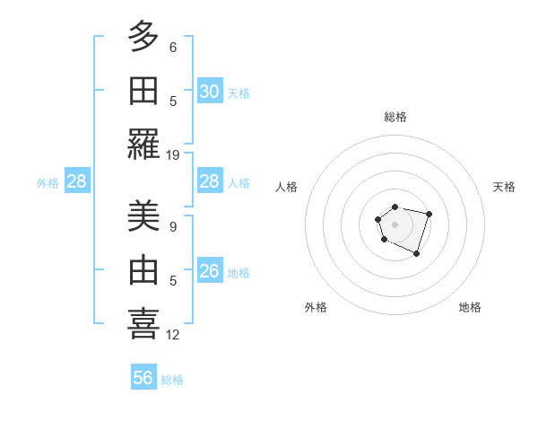 多田羅 美由喜さんを姓名の画数から五運を鑑定