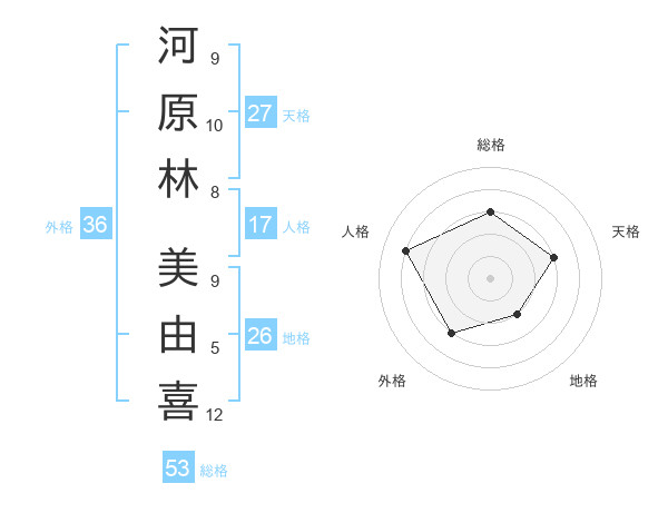 河原林 美由喜さんの総格は53画の3点!