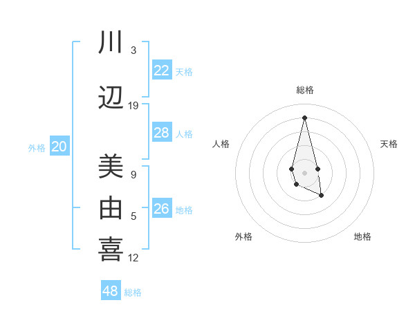 川辺 美由喜さんの天格は22画の1点!