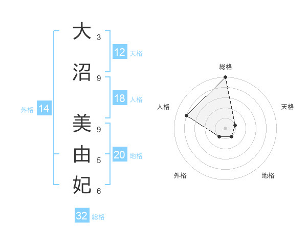 大沼 美由妃さんの総格は32画の5点!