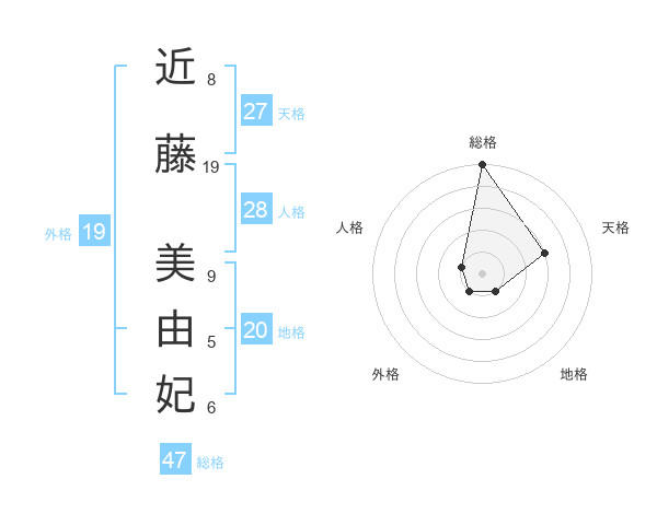 近藤 美由妃さんを姓名の画数から五運を鑑定