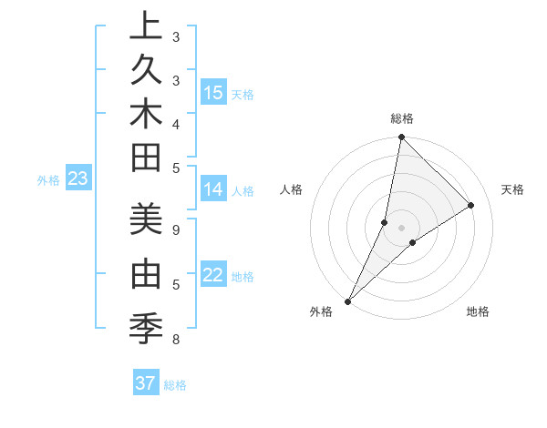 上久木田 美由季さんを姓名の画数から五運を鑑定
