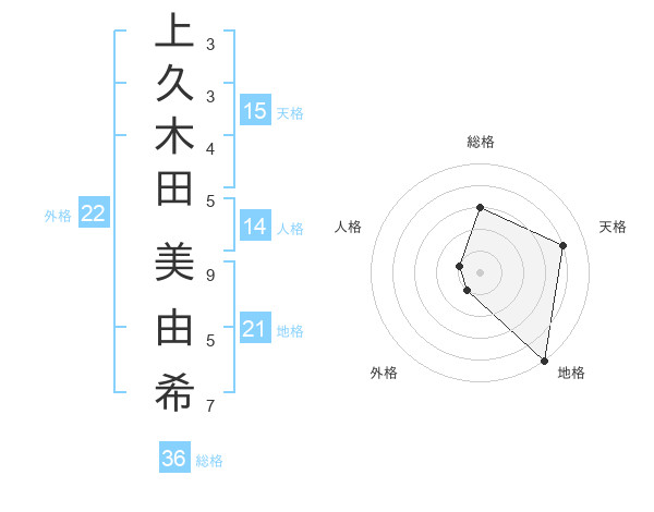 上久木田 美由希さんを姓名の画数から五運を鑑定