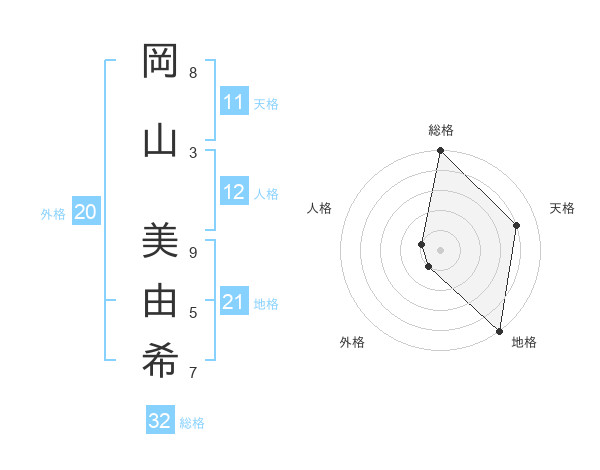 岡山 美由希さんを姓名の画数から五運を鑑定