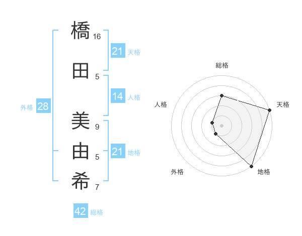 橋田 美由希さんを姓名の画数から五運を鑑定