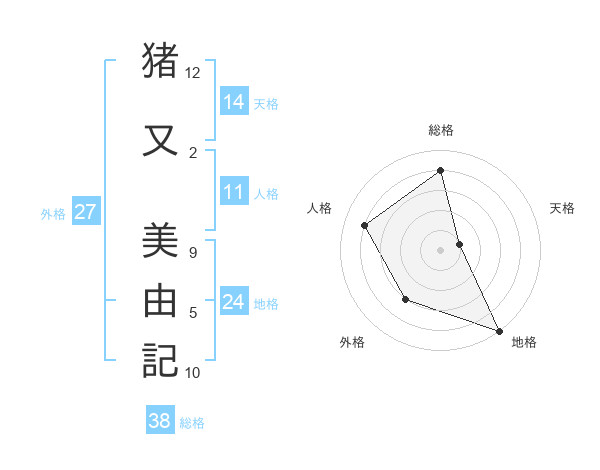 猪又 美由記さんを姓名の画数から五運を鑑定