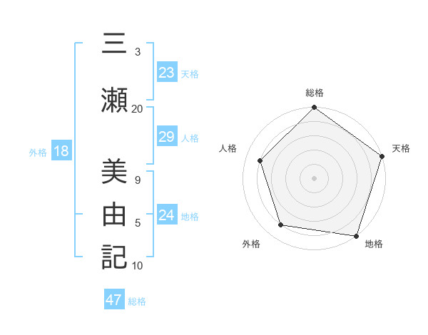 三瀬 美由記さんの総格は47画の5点!