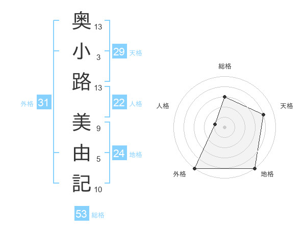 奥小路 美由記さんの外格は31画の5点!