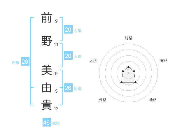 前野 美由貴さんの外格は26画の2点!