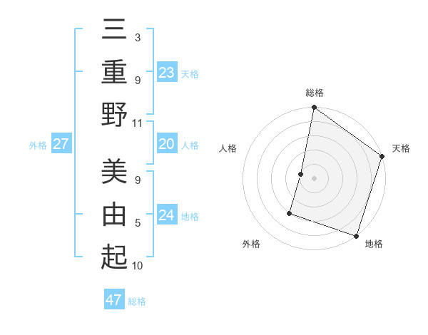 三重野 美由起さんを姓名の画数から五運を鑑定