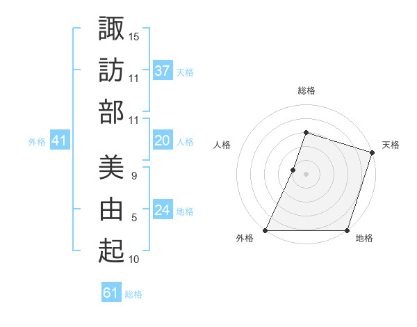 諏訪部 美由起さんの総格は61画の3点!